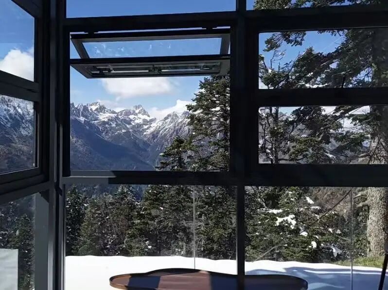 来官鹅沟最不能错过的就是那条雷古山索道。宛如一条空中走廊。坐在吊厢里,穿过林海雪原,两侧是挂满冰瀑的悬崖峭壁,远处是巍峨的雷古雪山,这种俯视大地的视角,是以往徒步无法体验的。索道单程运行15分钟,将官鹅沟的美景尽收眼底。到达雷古山上好像走进冰雪童话世界!