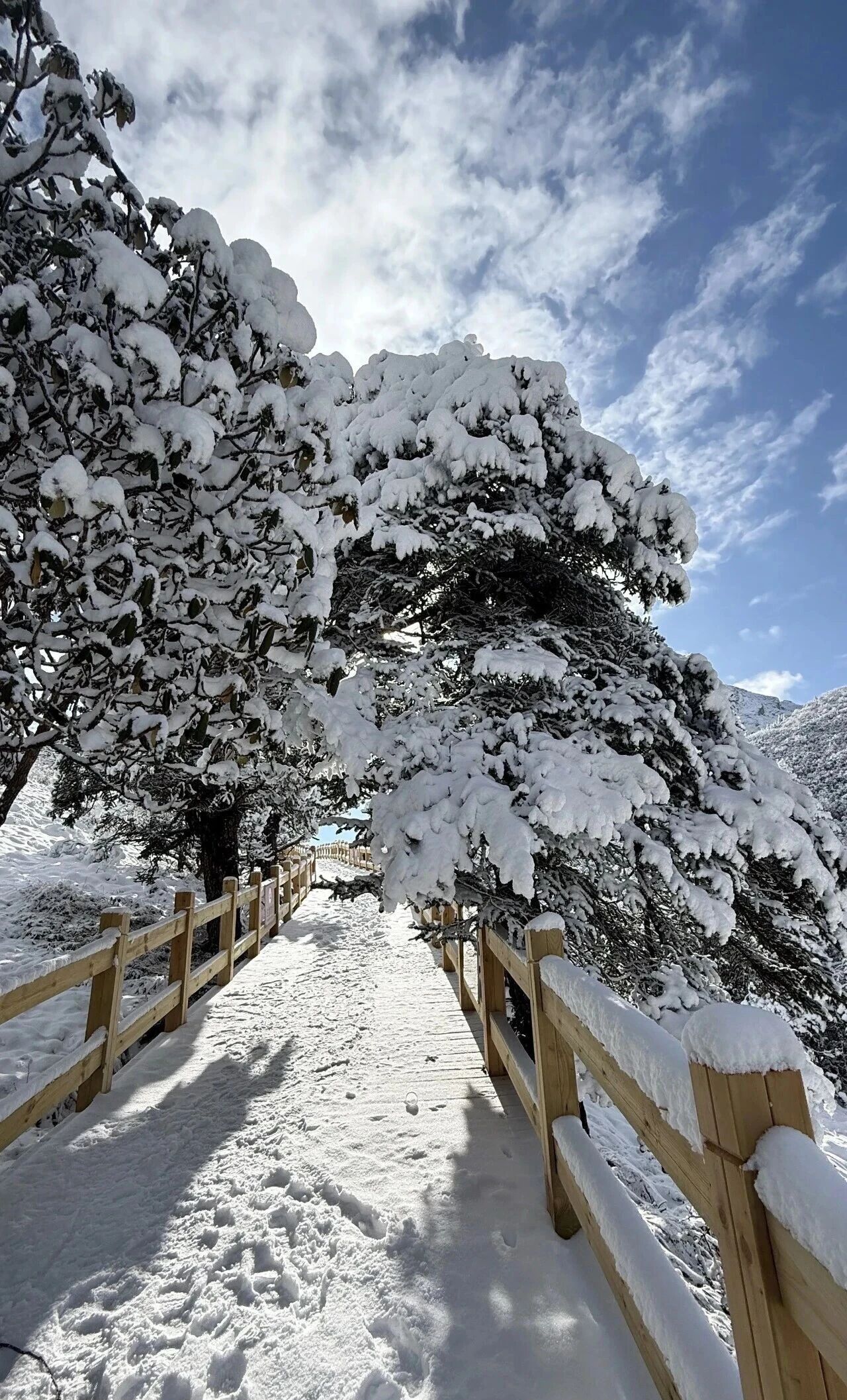 此外雷古山上还有500米的观景平台可光游览,但是木栈道上有雪,要注意脚下安全。景区工作人员也特别暖心安排了防滑链 ,让你可以更安全的欣赏如诗如画的美景!